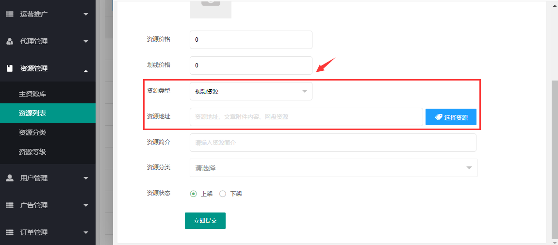 > 1.1.2、**视频资源**:上传视频或复制视频链接(常规视频格式均支持:mp4、3gp、m3u8)