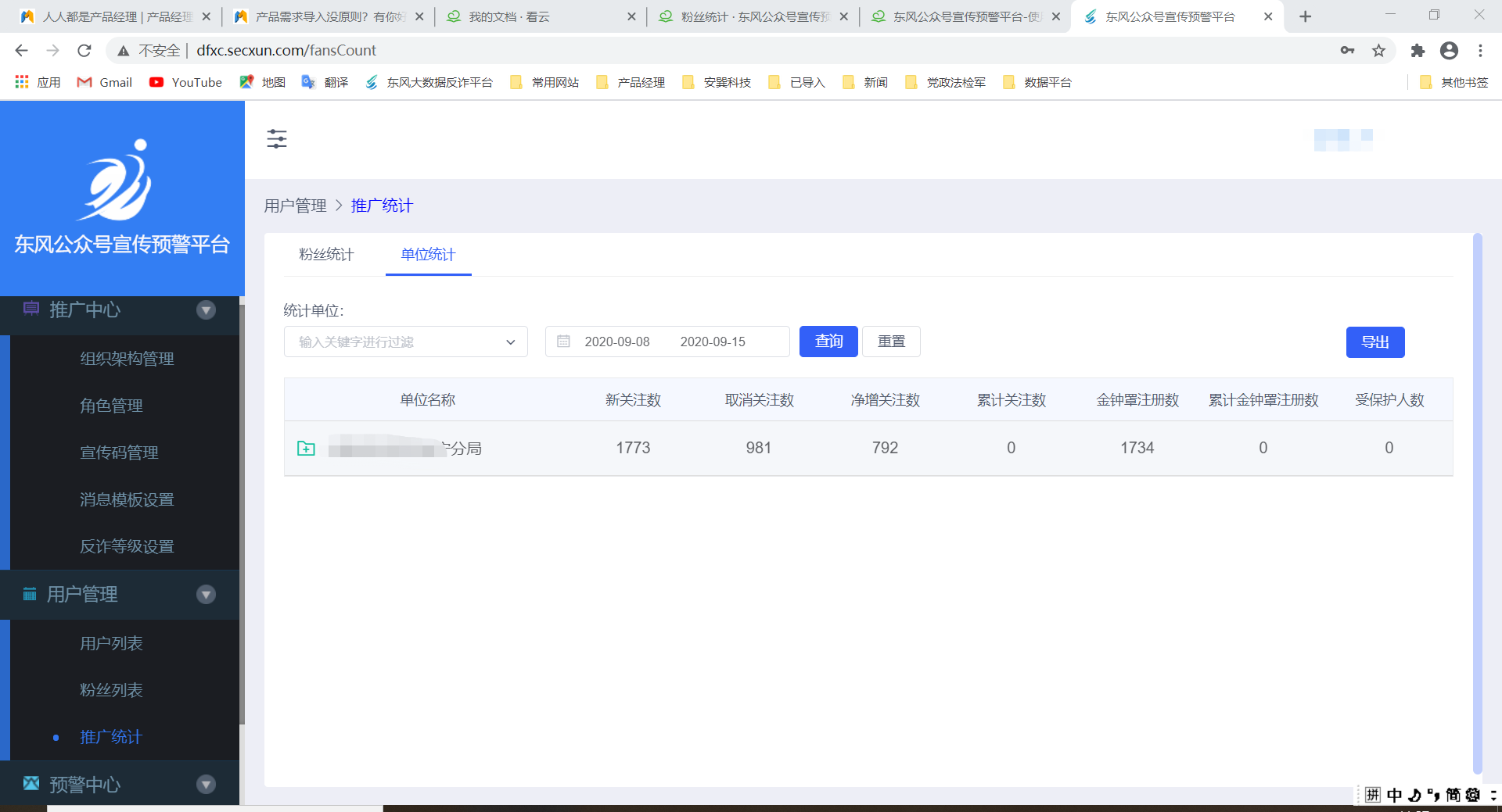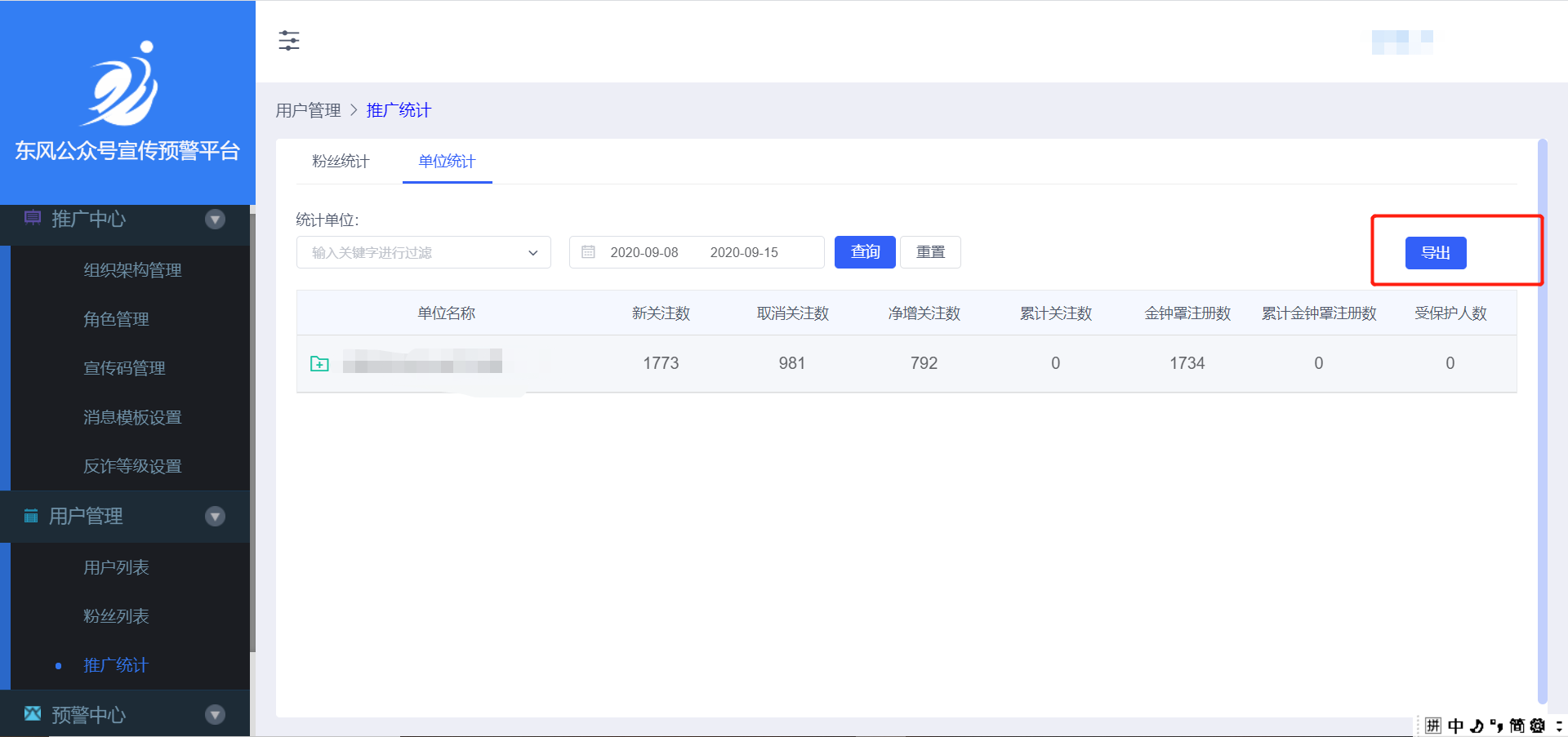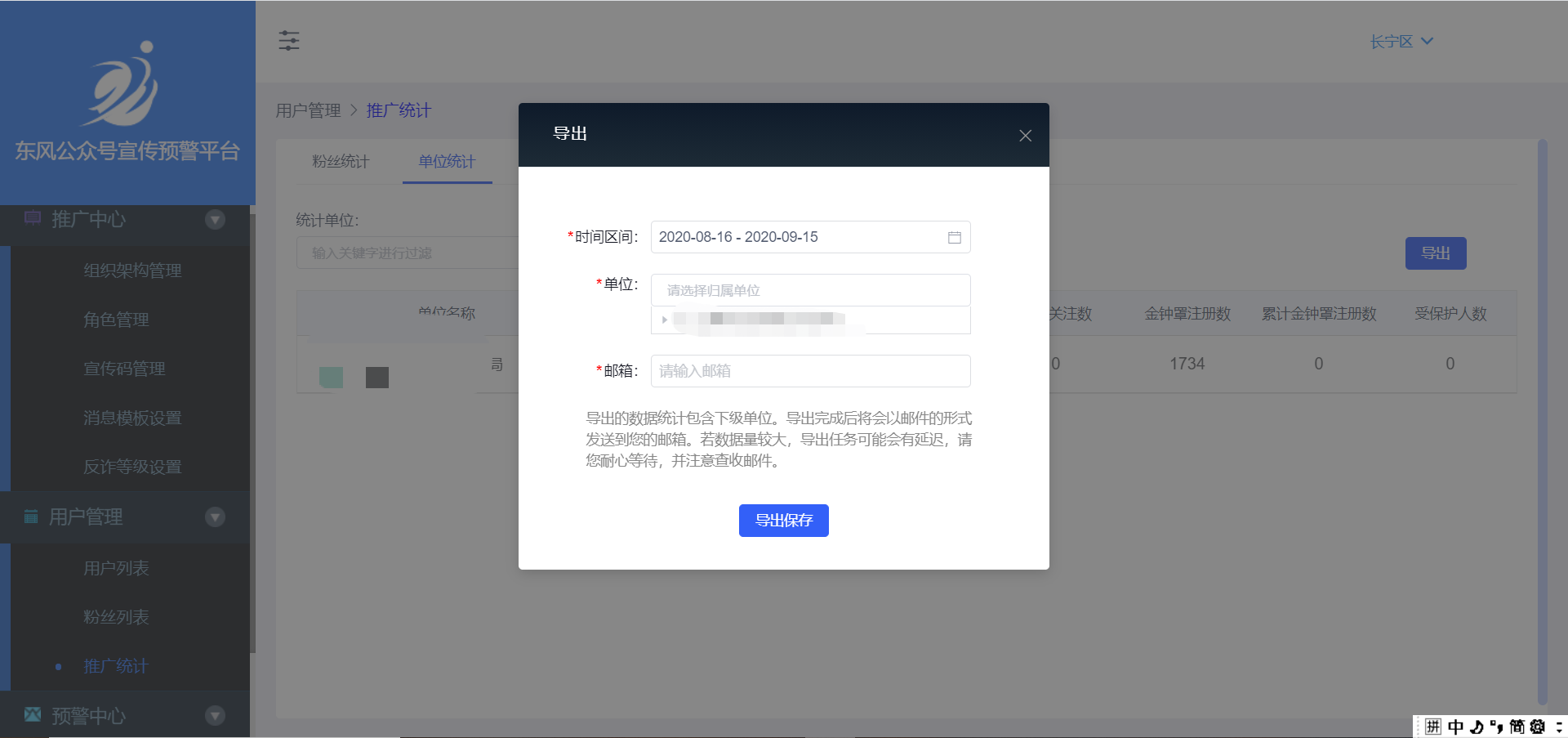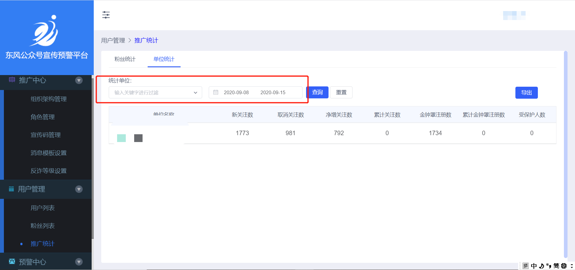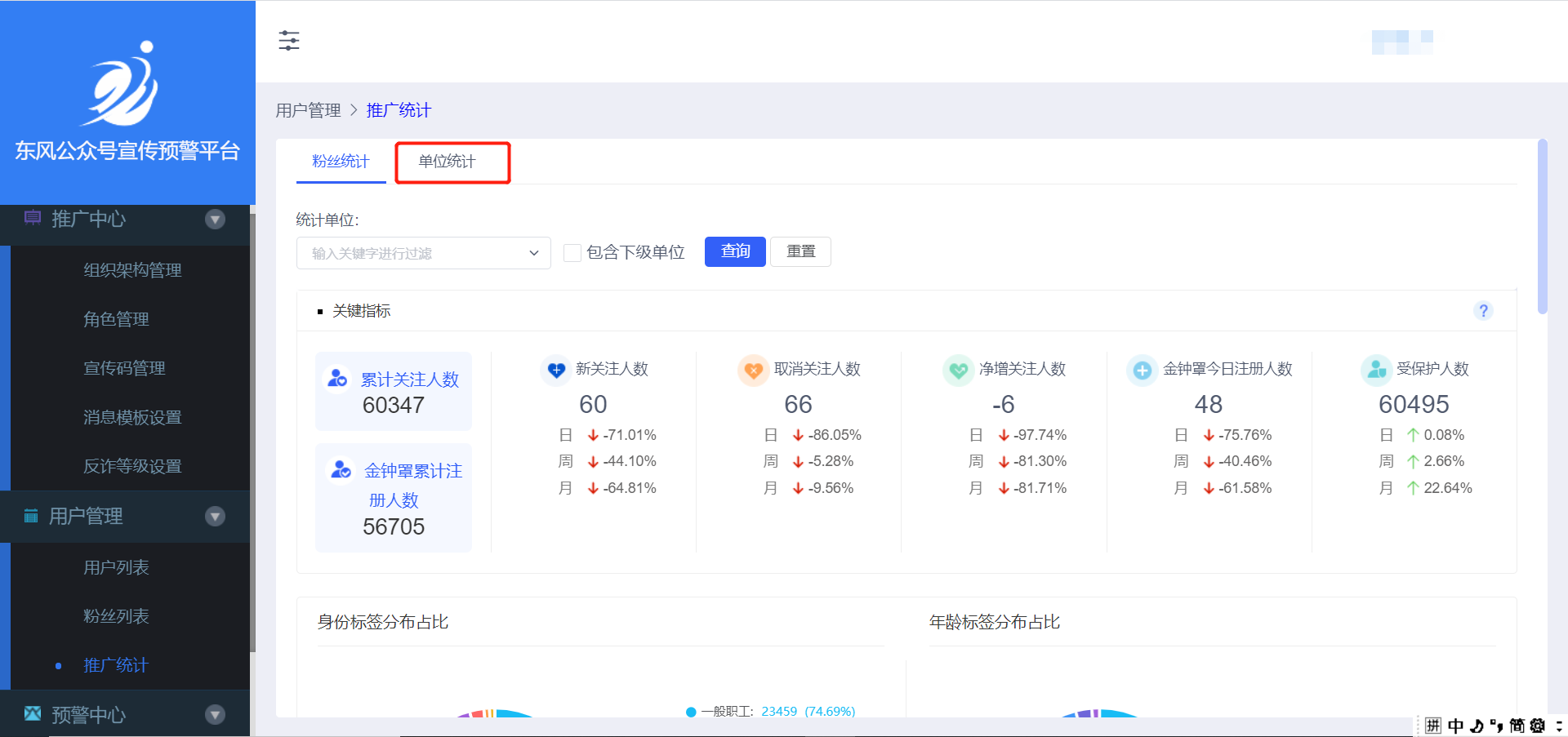 1.点击红框内的“统计单位”可选择查看的单位,同时可选择是否包含下级单位;