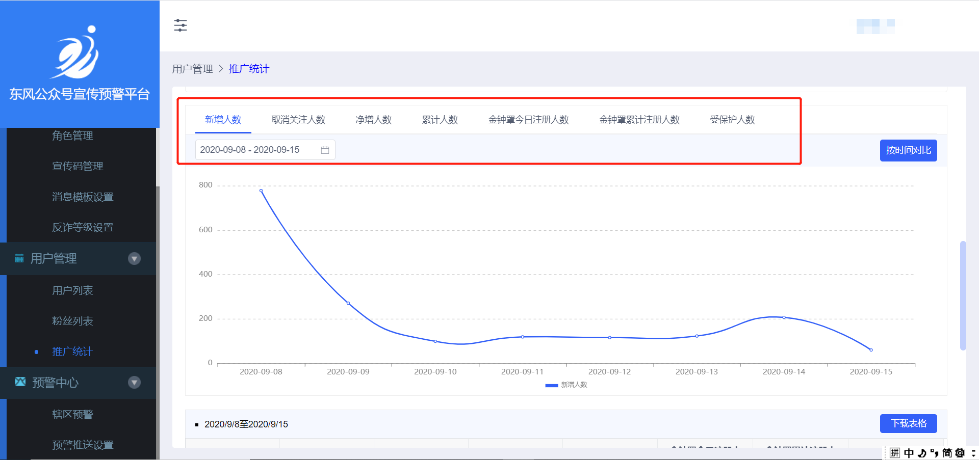 点击右侧的“下载表格”,可下载单日指标详情表格