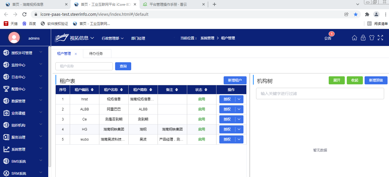 菜单勾选“主页”;每次访问平台管理,会在主页显示;如下图所示: