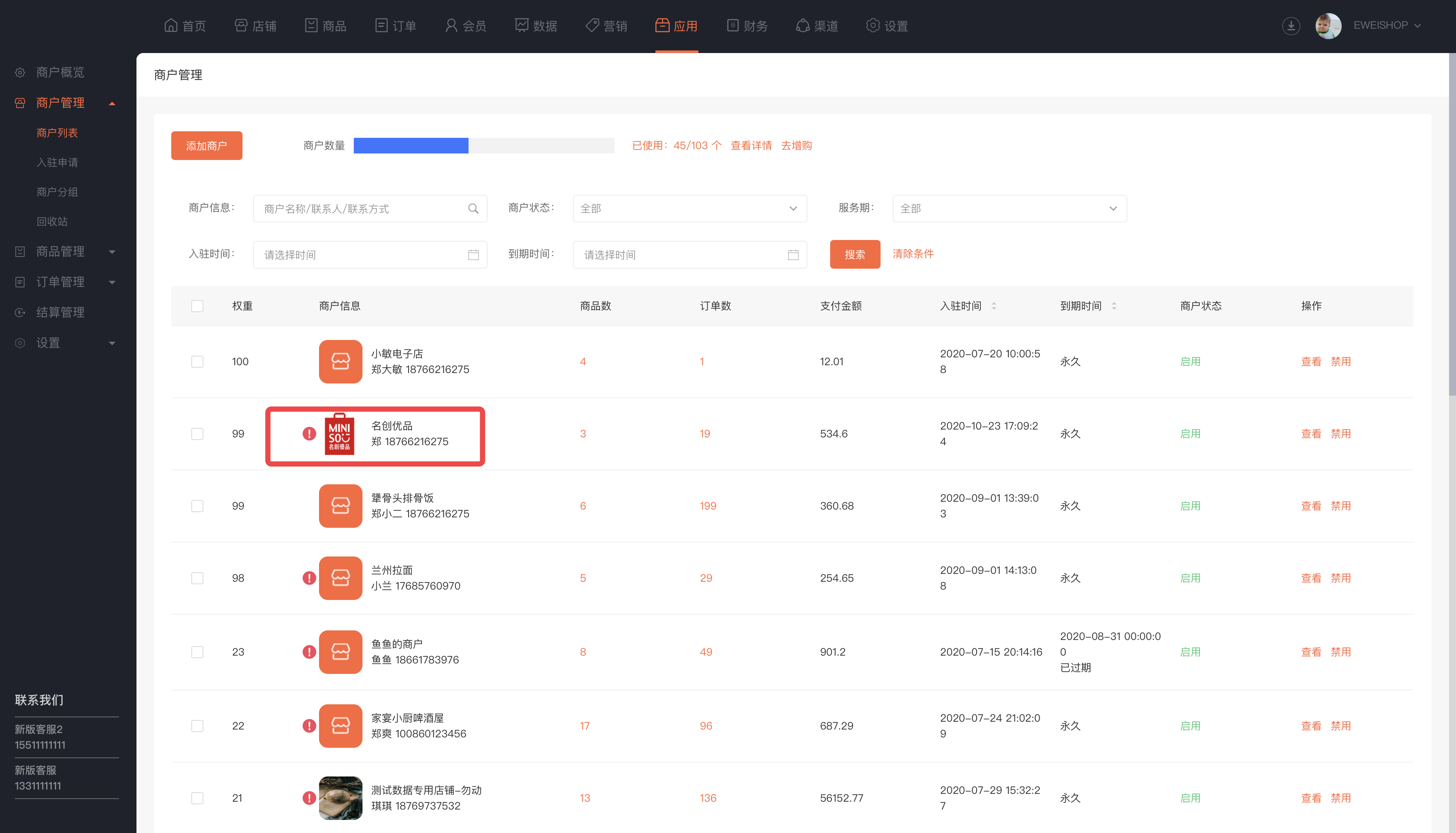 ES业务端后台 - 应用 - 多商户 - 基础设置