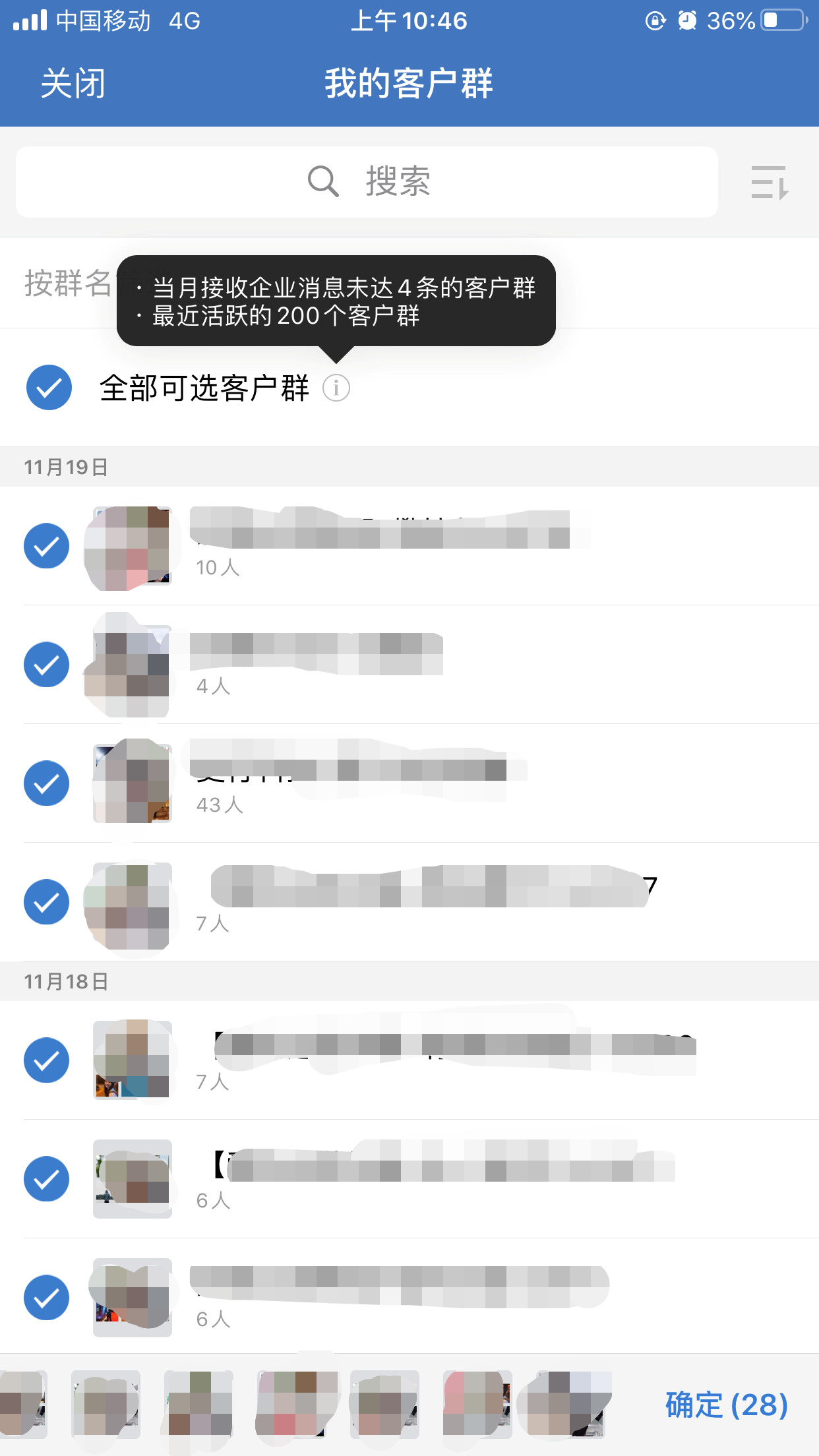 5、群主在企业微信中选择发送给哪些群聊