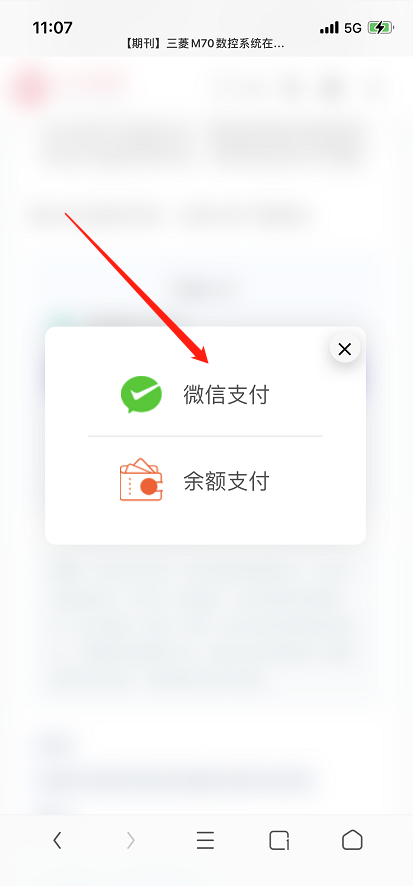 系统自动跳出购买方式选择界面,这里以微信支付为例,选择“微信支付”;