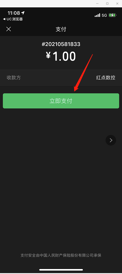 手机自动跳转到微信支付界面,支付成功并完成微信支付;