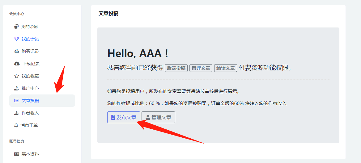 注册成为红点数控用户后,用户即可获得文章投稿权限,发布自己的文章,也可发布付费资源,发布的文章待博主审核通过后,会发布在红点数控网站上,其中付费的资源被他人购买后,同时可以获得作者收入。 (有关作者佣金,可查看:[作者佣金说明](https://www.kancloud.cn/a05303067/yhsm/2369715)) :-: