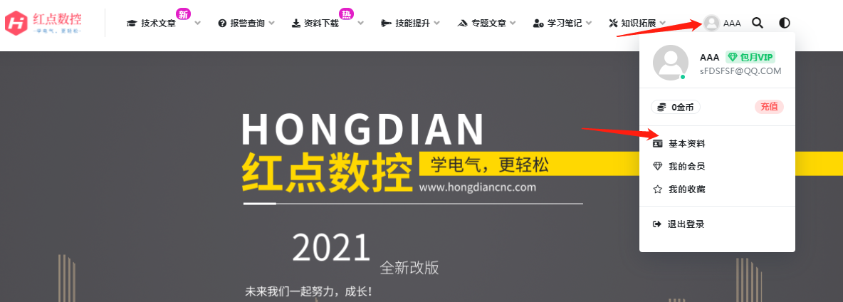 1. 点击网站右上方个人头像,选择基本资料,进入个人中心页面;