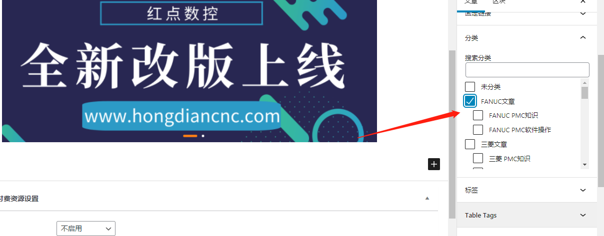 如当前编辑的是FANUC 文章,可以选择文章分类为“FANUC 文章”。