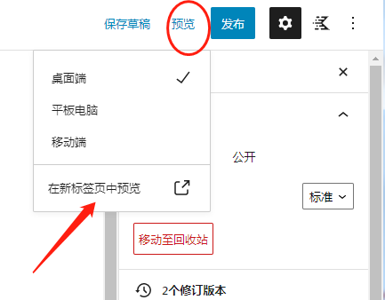 编辑文章时,可以通过页面右上方“预览“功能,预览文章发布后的效果;