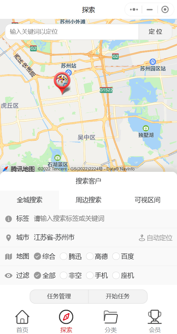 3.周边搜索=地图上显示的位置就是你定位的附近(小蜘蛛图标)