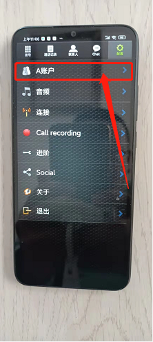 4.返回主页显示你填写的sip账户信息内 账户名称并且在线即可