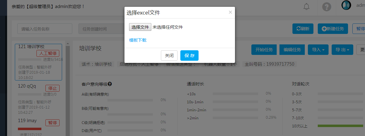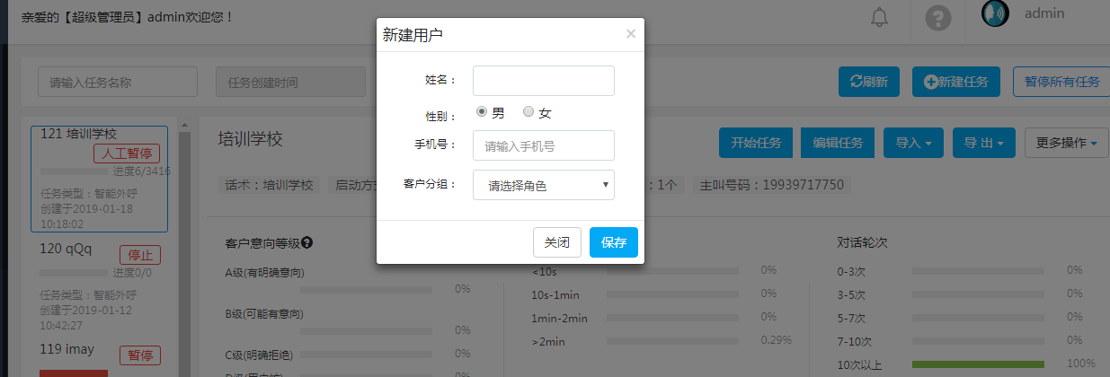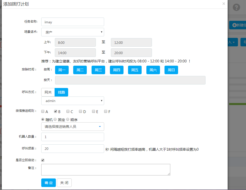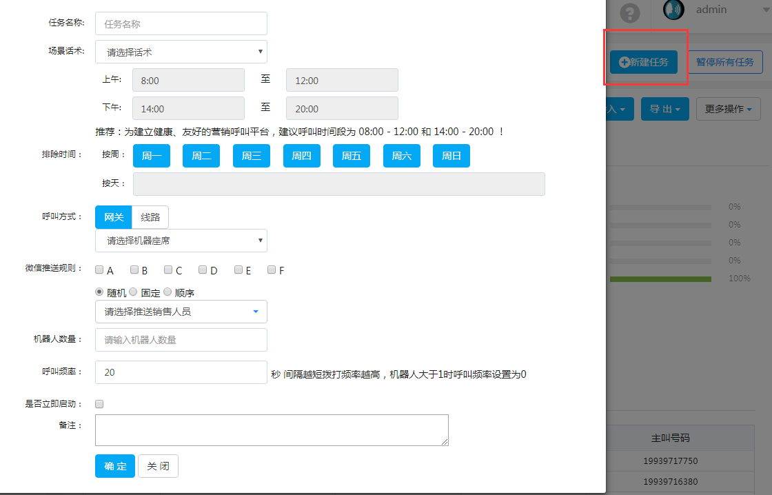 就是设置任务的,但是,要先建立好线路、话术场景、网关。准备好要导入的用户之类的东西