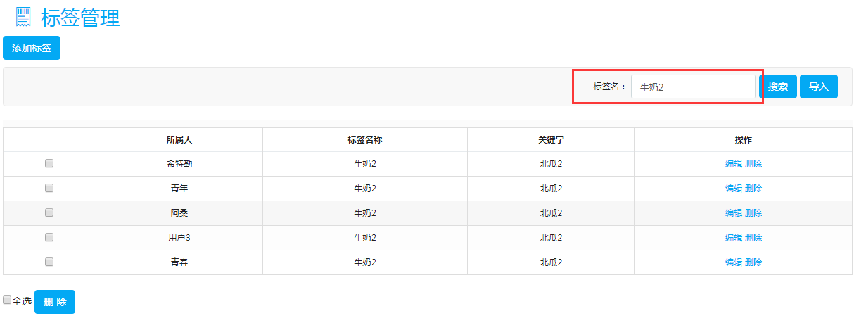 3)或者(多个), 点击"全选"或单击选择记录前面的复选框,再单击左下角的删除按钮删除多个