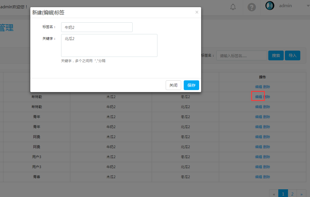 如下图:点击列表行右边的“编辑”关键字,弹出编辑框,修改内容后点击“确定”按钮即可。
