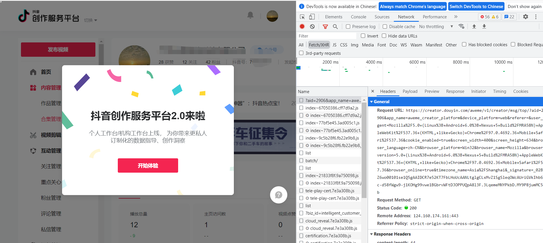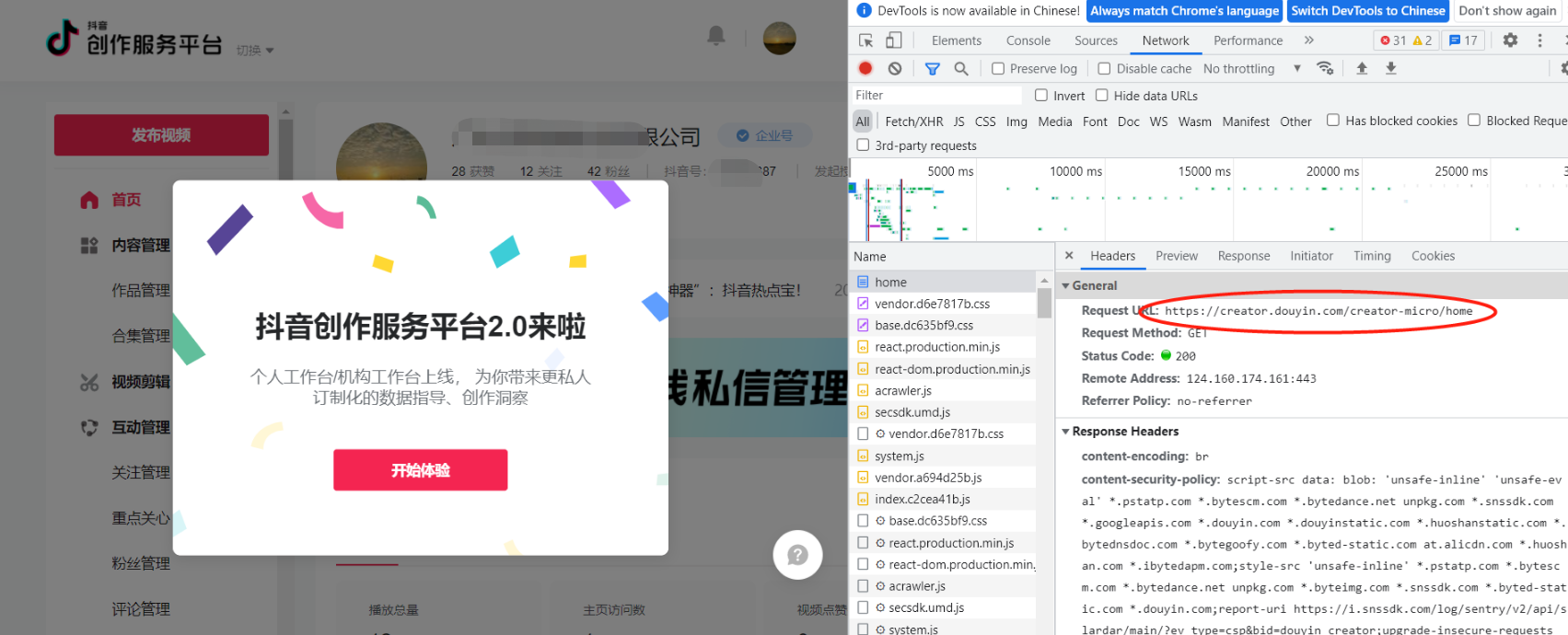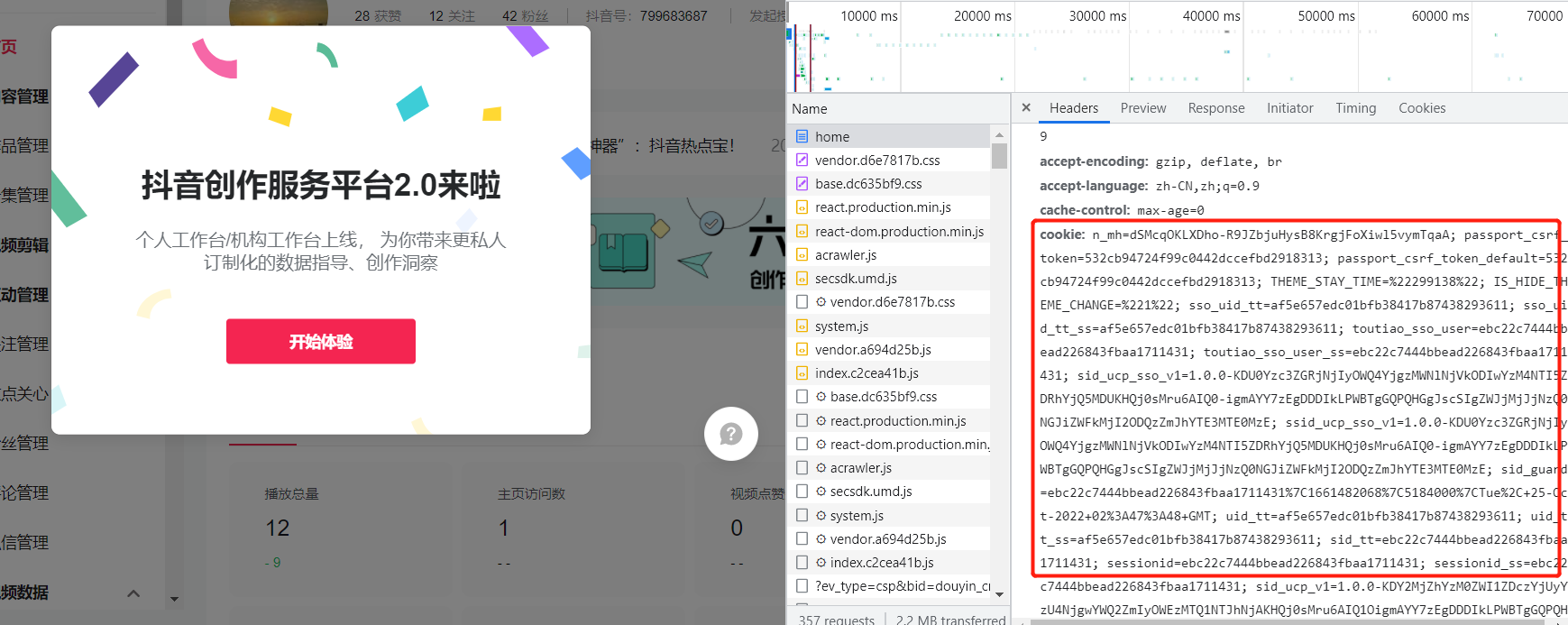 找到域名是creator.douyin.com开头的请求
