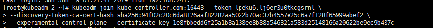 kubeadm join kube-controller.com:16443 --token 6ufikp.2ib6lia0qaeskykf --discovery-token-unsafe-skip-ca-verification --experimental-control-plane