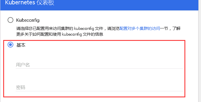 默认情况下,dashboard只能使用token和config方式登录, 但是可以通过添加`--authentication-mode=basic`选项,使用用户名密码登录
