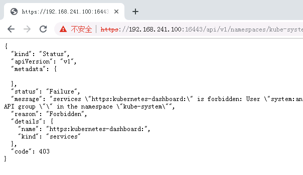 这是因为kubeadm默认启动了RBAC功能,而浏览器没有相关的用户证书,所以需要创建一个浏览器证书