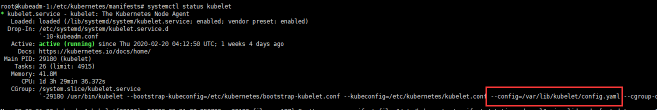 通过命令查看当前 kubelet 的配置文件所在路径