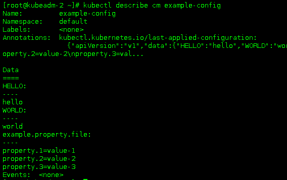 $ kubectl create configmap my-config --from-literal=key1=config1 --from-literal=key2=config2
