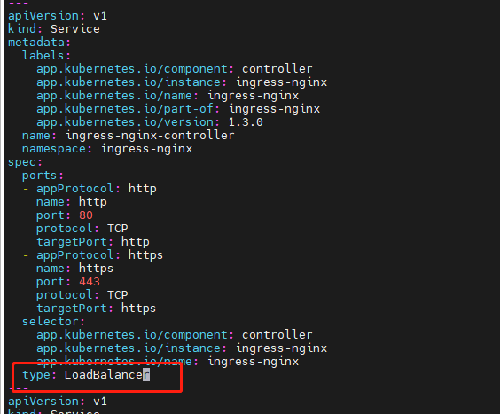 默认 `ingress-nginx-controller` 的 `SVC`是使用`NodePort`,把这个修改成`LoadBalancer`