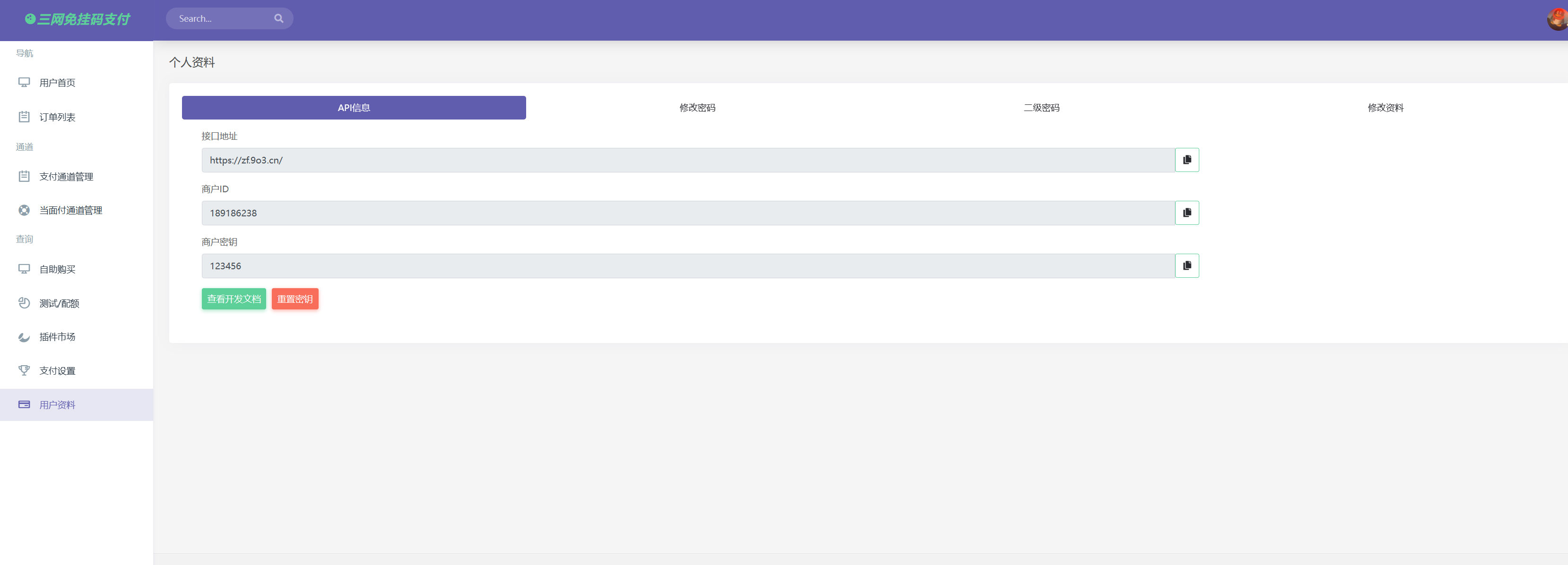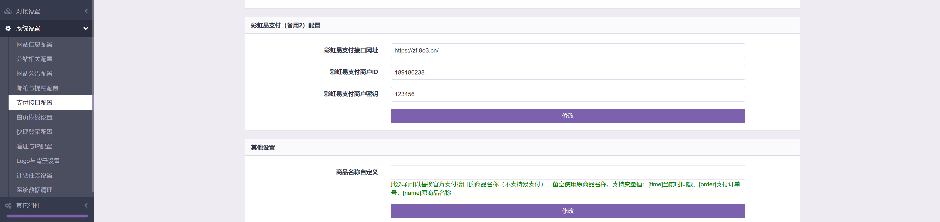 随后,复制本站的网关,ID以及Key,到您的网站上,填好保存即可