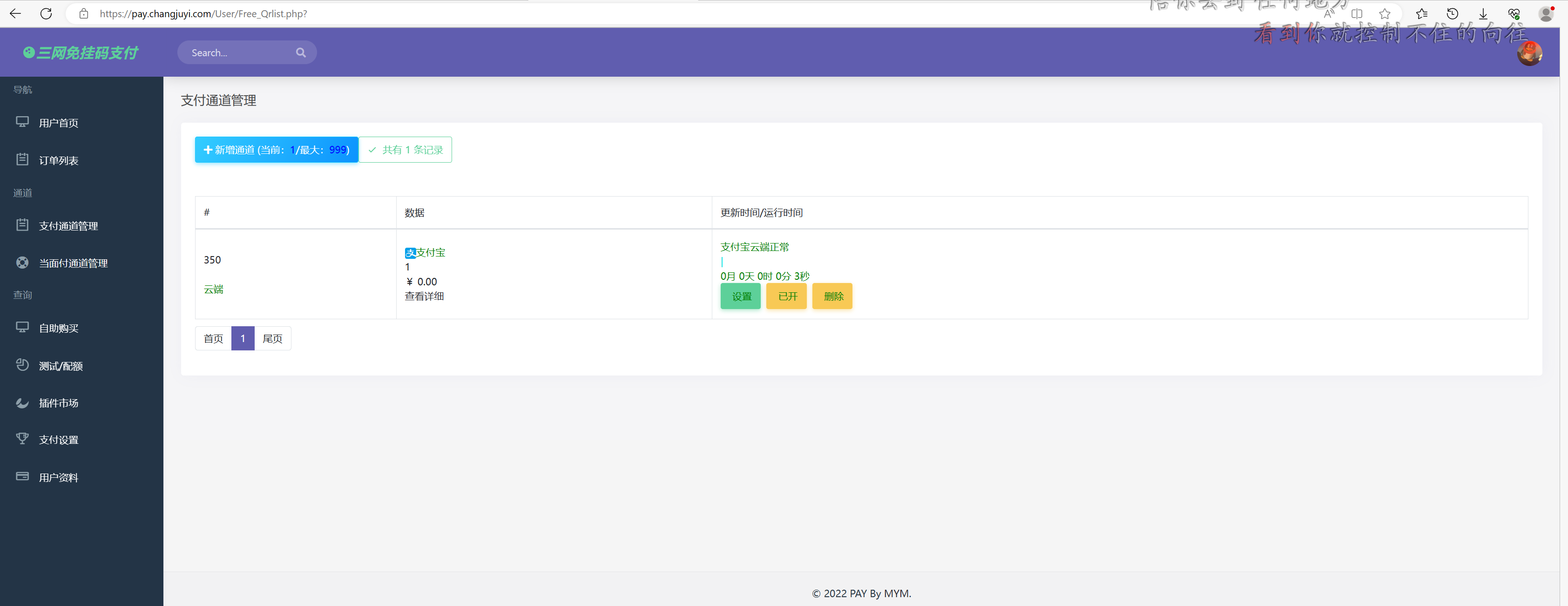 ## **Tips:如果您的通道添加成功以后,没有正常且实时显示支付宝余额,那么可能是您的公钥或者私钥没有填写对,或者含有空格【部分用户添加以后可能不主动显示余额,您可以发起一个订单并支付,成功回调后会显示余额剩余】**
