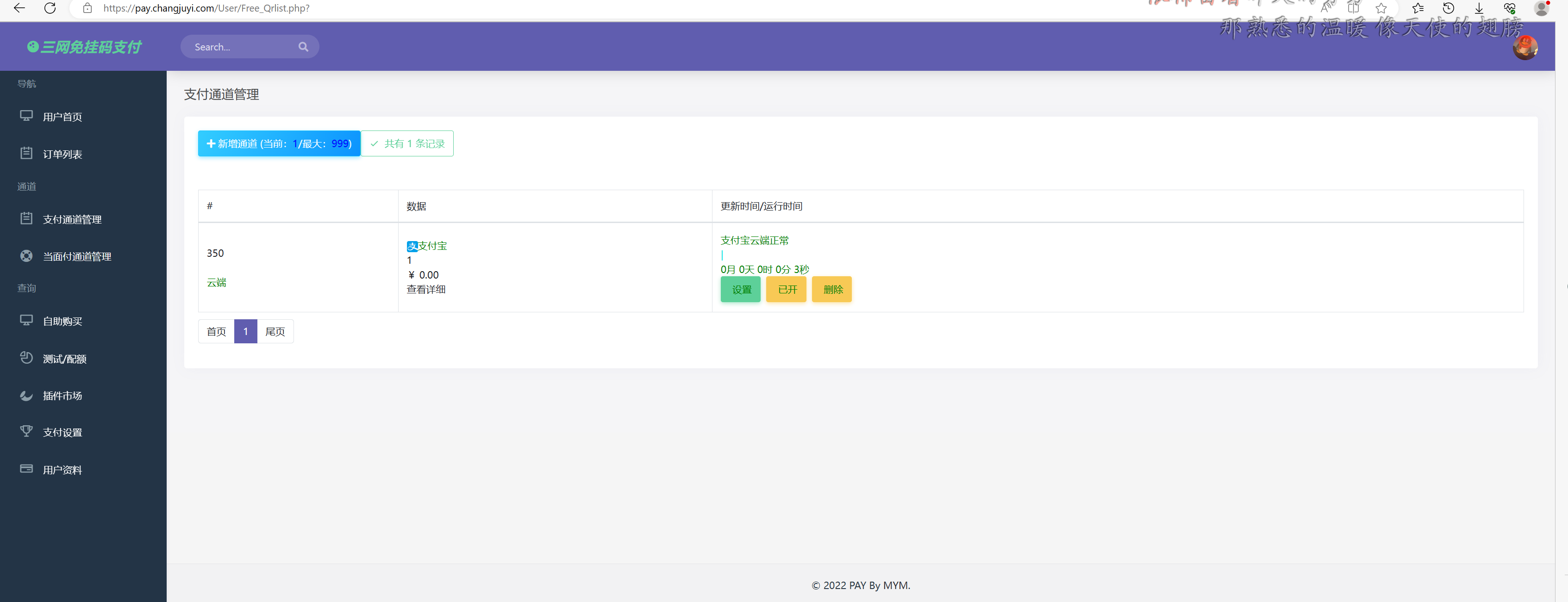 ### **点击确定以后,支付宝状态显示正常,通道即为添加成功**