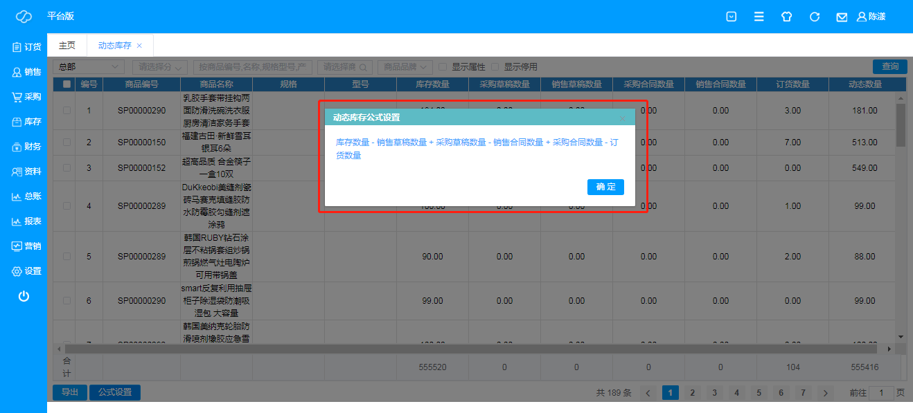 注:可以自主设置动态库存的计算公式,点击选项即可;