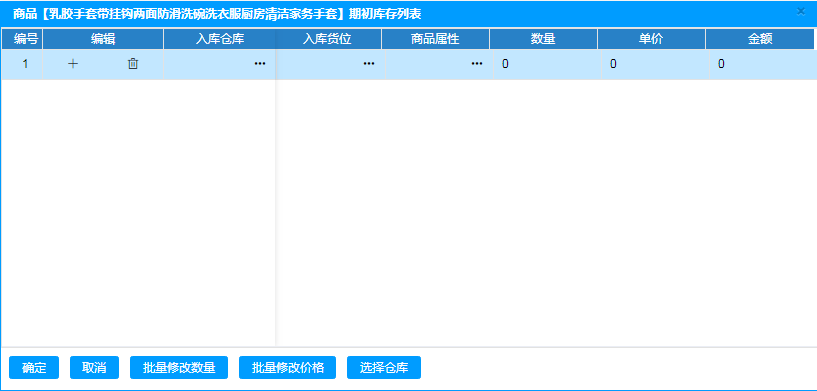 B、 修改期初:即可以修改期初商品的入库信息:仓库、货位、数量、金额等;