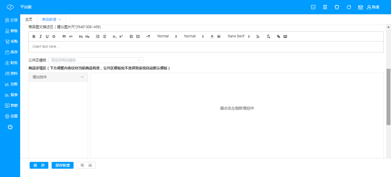 E、 商品详情区:即除商品详情外的其他展示或者活动链接等,调整内容仅对当前商品有效,公共区模板如不选择则系统自动默认模板;