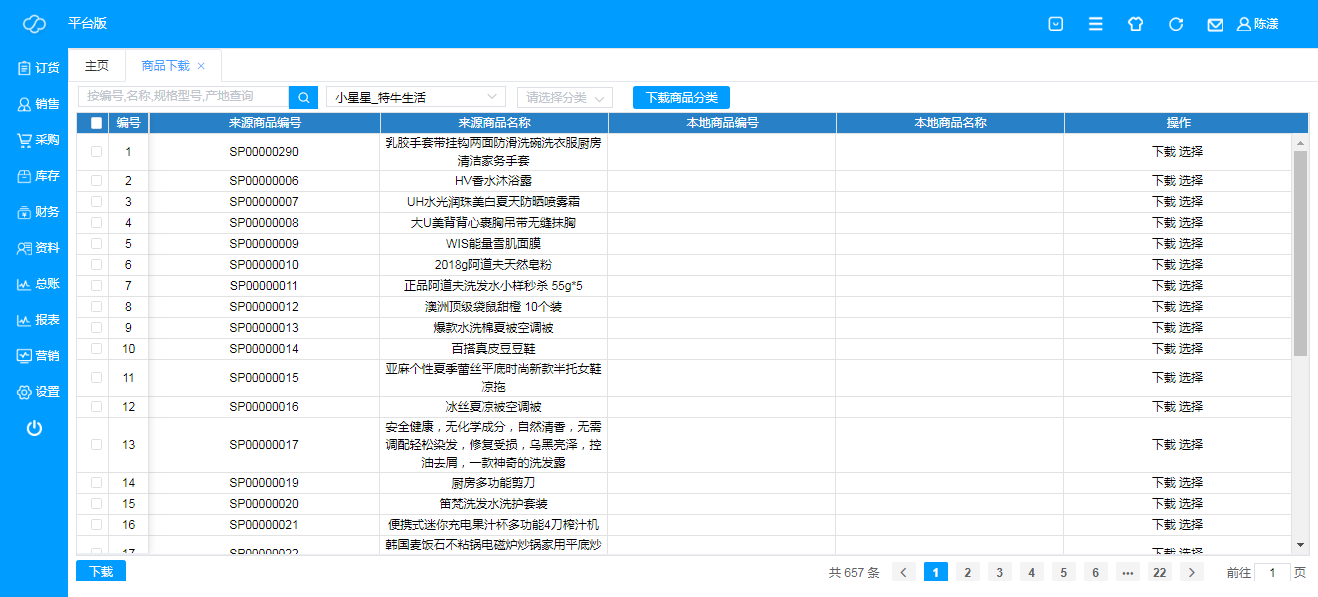注:操作“选择”是可以选择现有店铺里的商品,直接给需要下载的商品更改在现有店铺的商品名称;