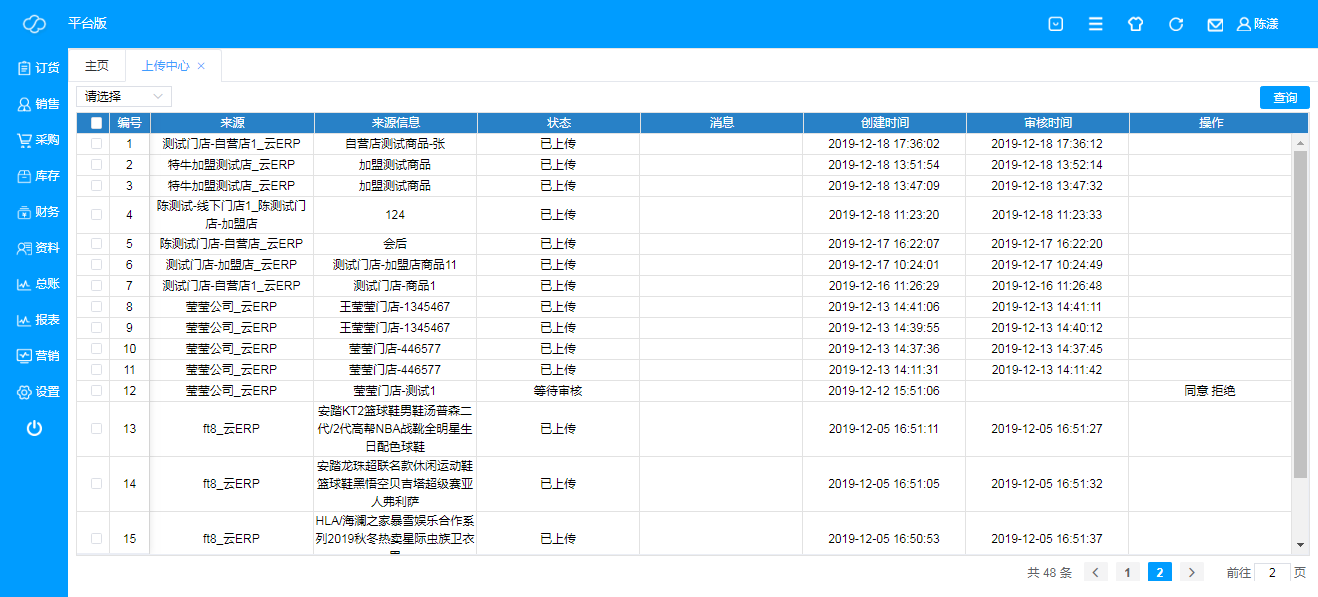 即加盟店/自营店向总部上传的商品,总部进行审核,审核通过后,会显示在订货端的的商品列表中,客户下单后,自营店/加盟店也可以直接收到订单信息;