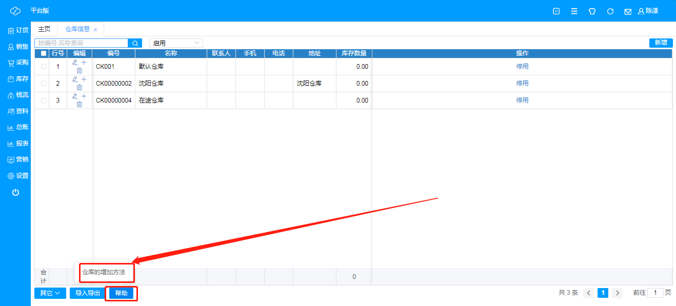 即查询或者新建货位信息,所有货位需要选择对应的仓库信息;