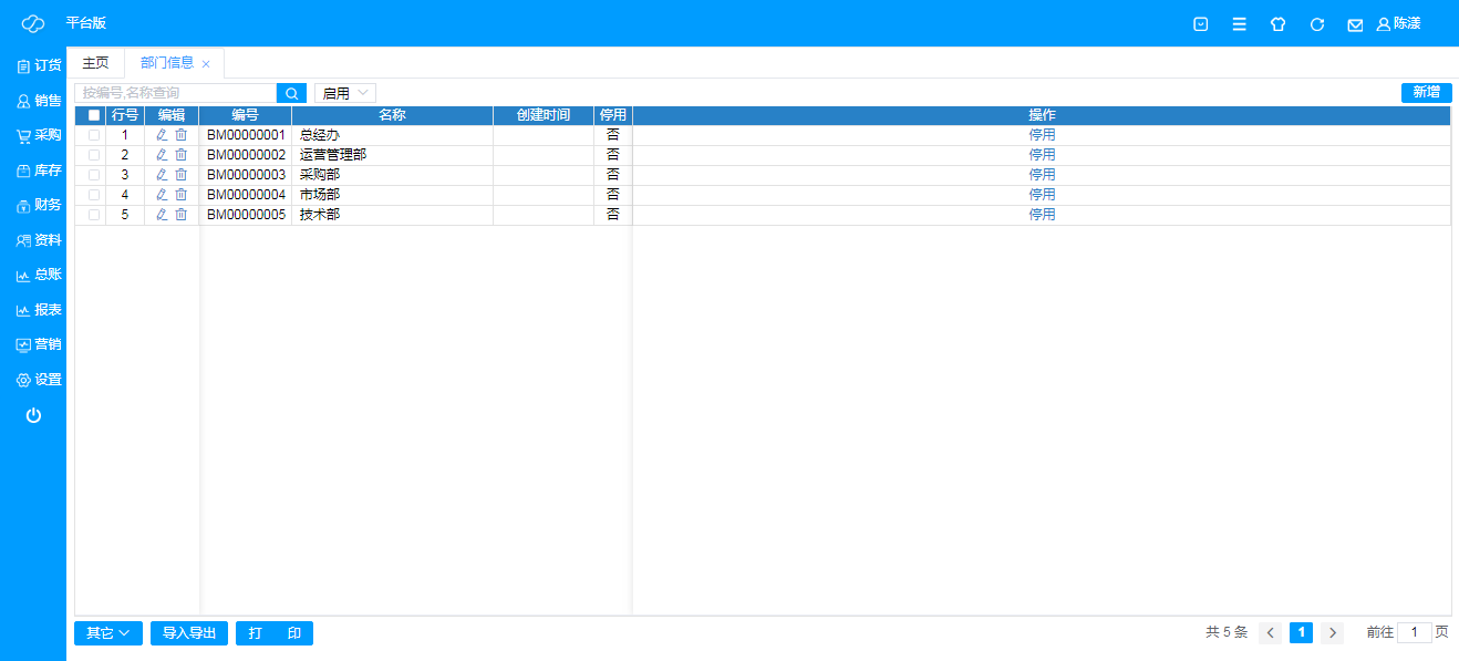 即查询或者新建部门信息;