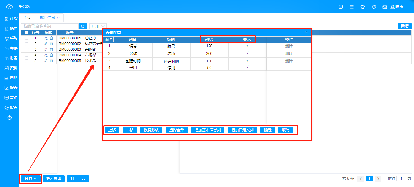·**其他**:可进行表格配置,根据实际需求,选择展示表格数据,也可对数据结果展示进行编辑,列宽,上下顺序等;