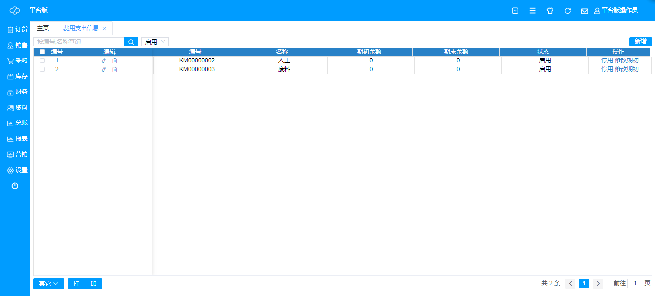 即其他所有费用支出的科目信息,可根据实际情况增加;
