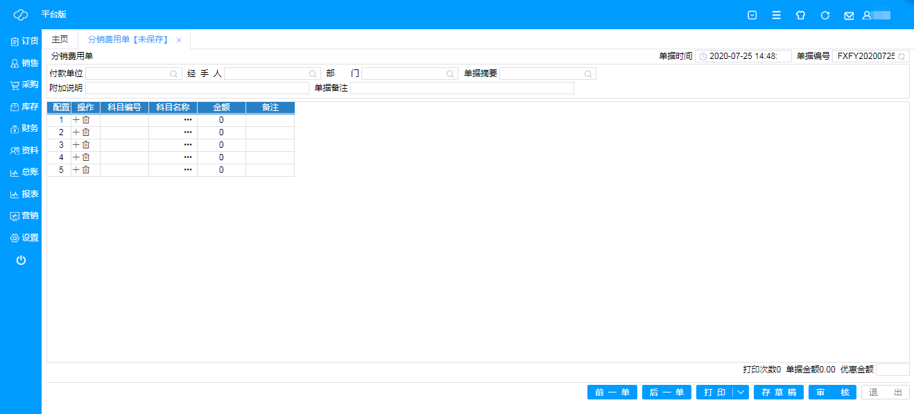销售商品产生分销佣金时填制;