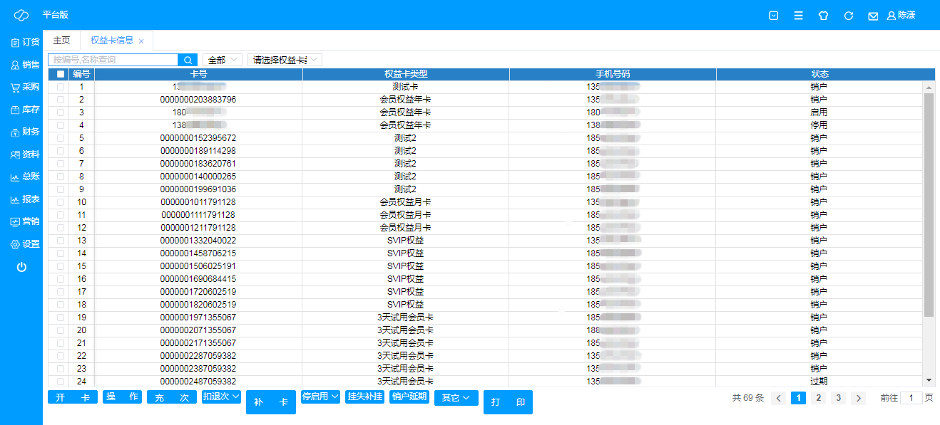 即所有拥有权益卡的客户信息,可根据卡号搜索或者选择单张权益卡查看所有客户信息;
