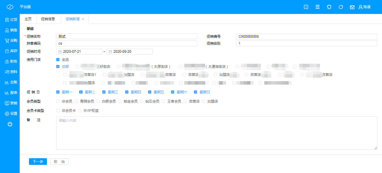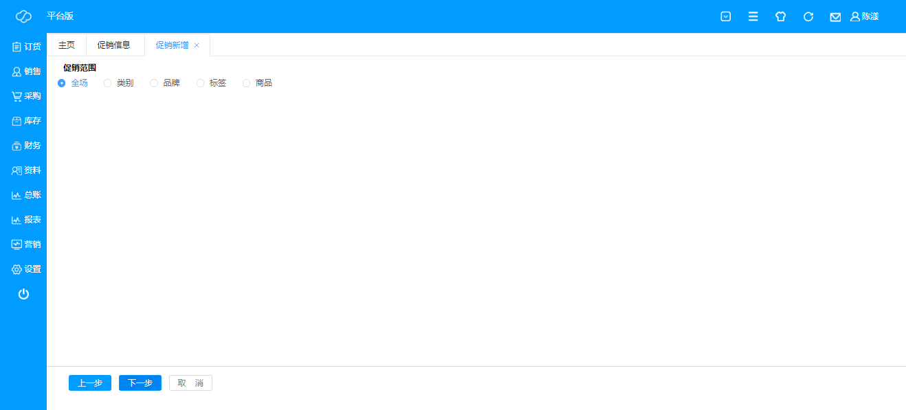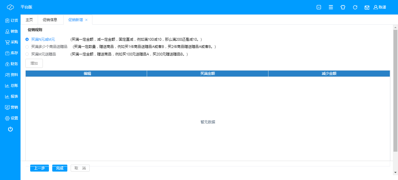 用于查询、编辑和新增促销信息内容,点击“新增”,即可新建促销信息;