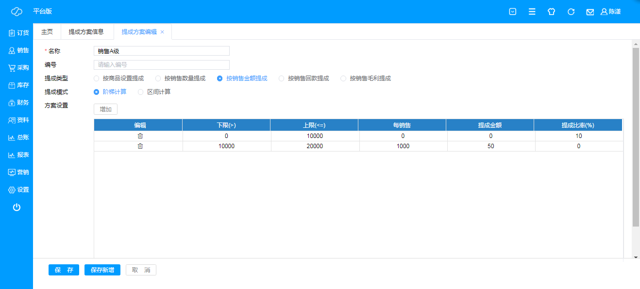 用于查询、设置提成规则,可根据实际情况进行设置;