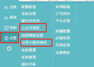 (a) 、登陆云涛软件操作后台,进入设置,授权微信公众号和小程序,如不使用小程序仅授权公众号即可;