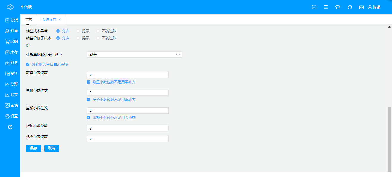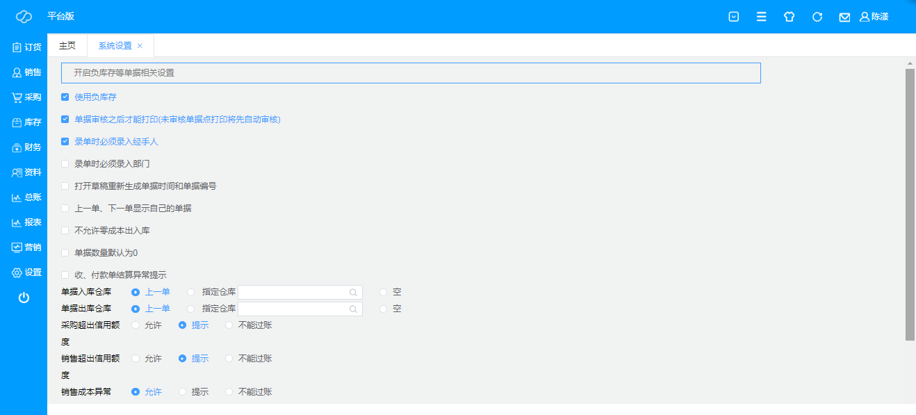 A、 单据设置:用于设置负库存及单据信息的相关内容,可根据实际情况进行设置;