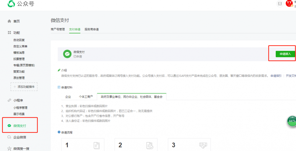 (10) 、用已有支付商户号关联公众号或小程序的操作;
