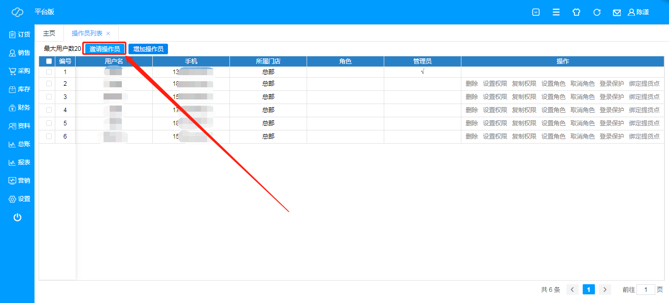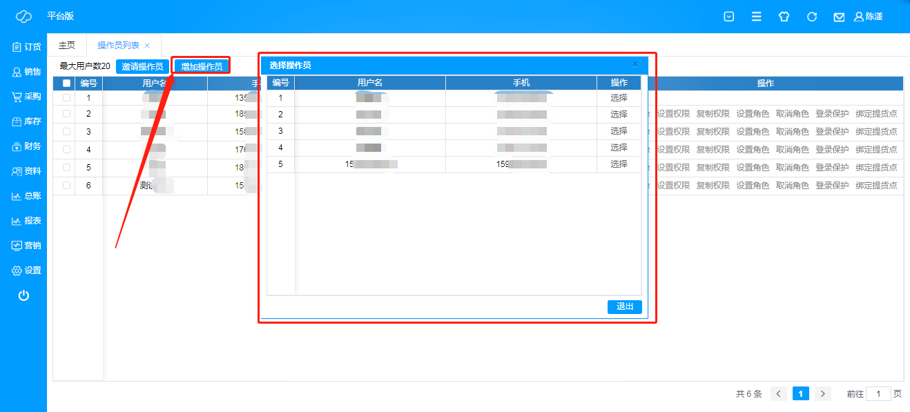 F、 点击“增加操作员”,选择已邀请的操作员即可添加成功;