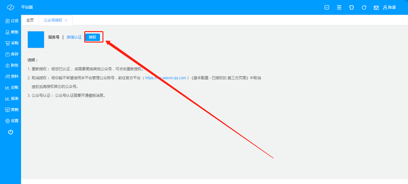 即将微信公众平台对云涛软件进行授权;