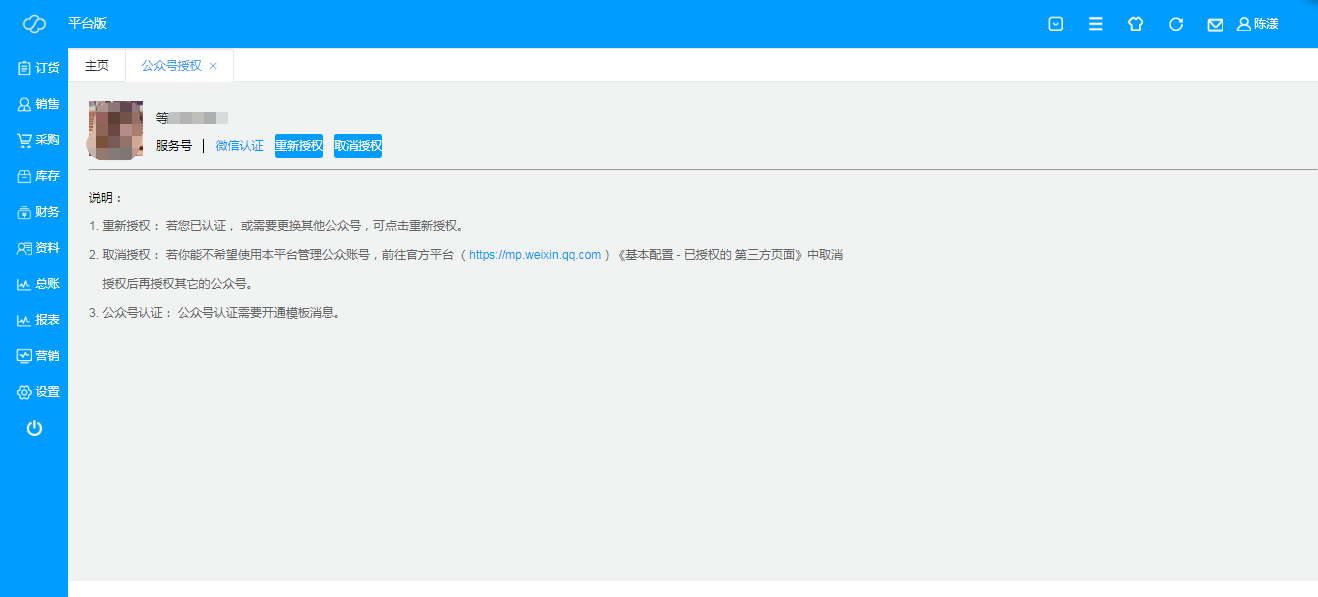 - 订货小程序授权