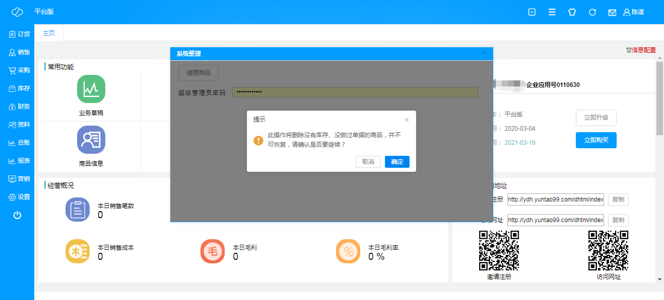 即对后台商品进行整理,将直接删除没有库存、没有做过单据的商品,且不能恢复,此功能只有超级管理员可以操作;