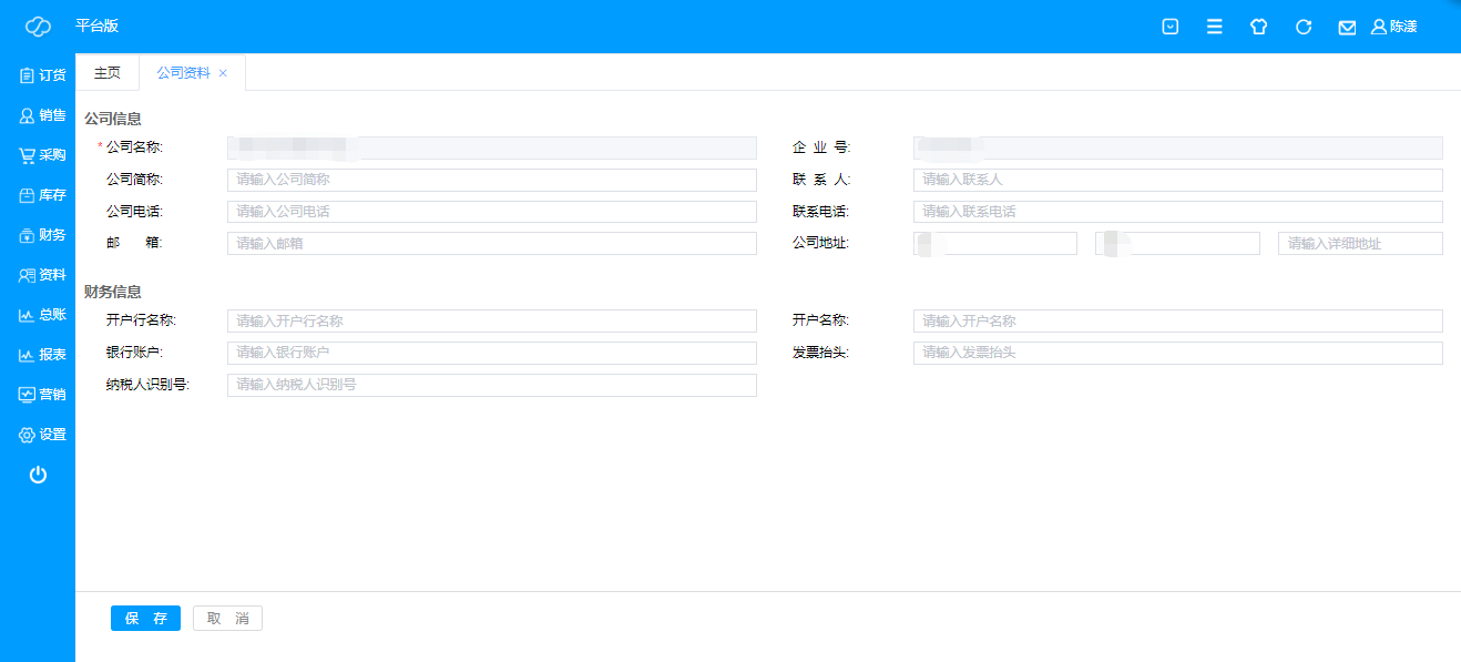 即填写公司基本资料,公司名称和企业号在新建时已经填写,默认不能修改,此处可补充公司其他基本信息,根据实际信息进行填写即可;