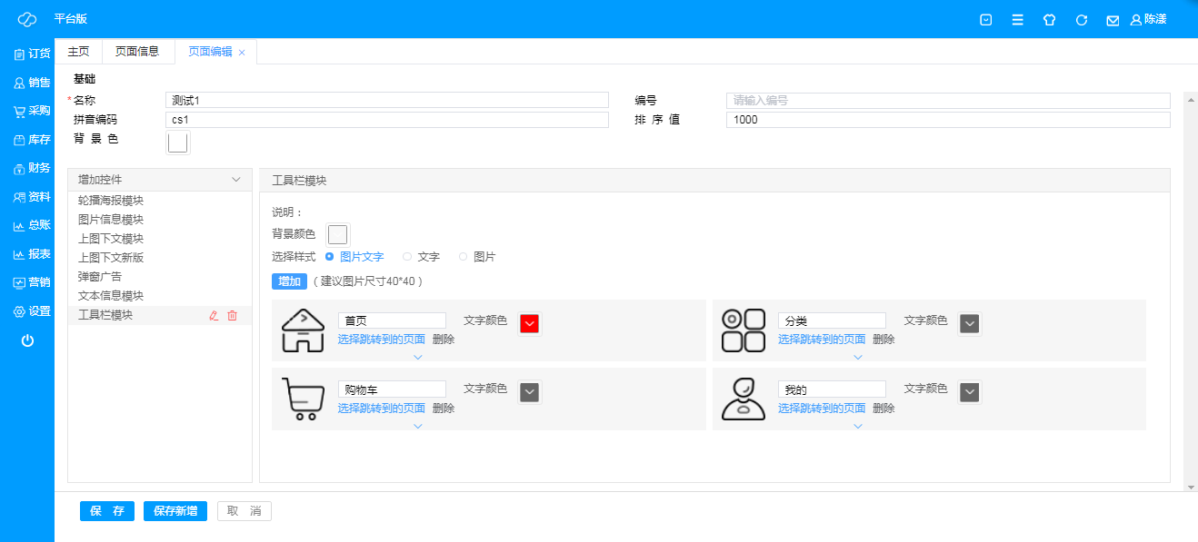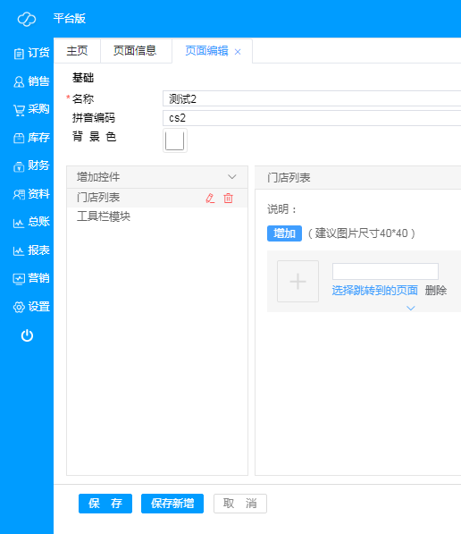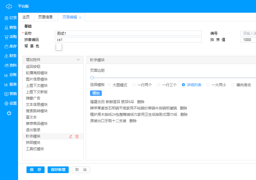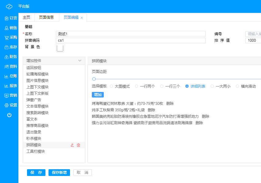 用于编辑和新增微页面信息以及商品页面模板;