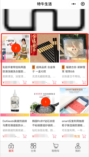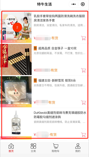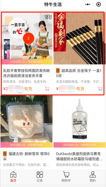 注:商品图上有数字的,表示购物车里有几个该商品;